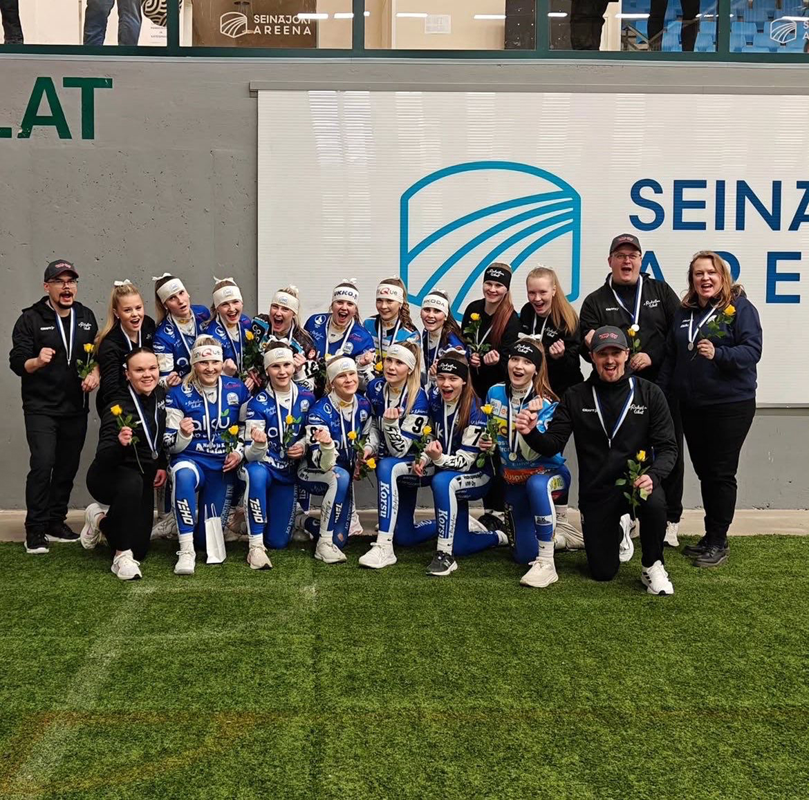 Ilona Kankaanpää (alarivissä toinen vasemmalta) oli mukana Oulun Lipon B-junioreiden joukkueessa, joka voitti Talvisuperin SM-hopeaa Seinäjoella. Kuva: Ilona Kankaanpää