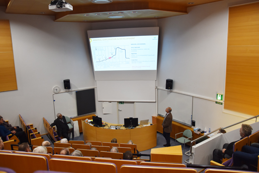 Tilaisuuden avasi GeoPoolilta Robert Stenberg, joka esitteli kaivoslain mukaisia lupakäytäntöjä sekä malminetsinnän eri menetelmiä. Stenberg muun muassa kertoi siitä, millaisia vaiheita malminetsintä prosessi sisältää.