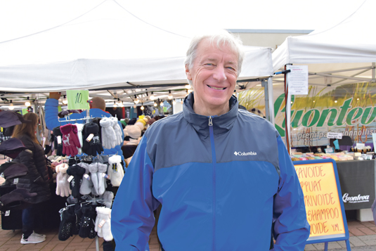 Syysmarkkinat ovat hyvä tapa nähdä tuttuja, kun ystävien tapaamiset tahtovat jäädä näinä aikoina muuten aika vähäisiksi. Kaupunginvaltuutettu Pekka Rahkola (kok.) asteli torilla vaimonsa kanssa tottuneeseen tyyliin.
