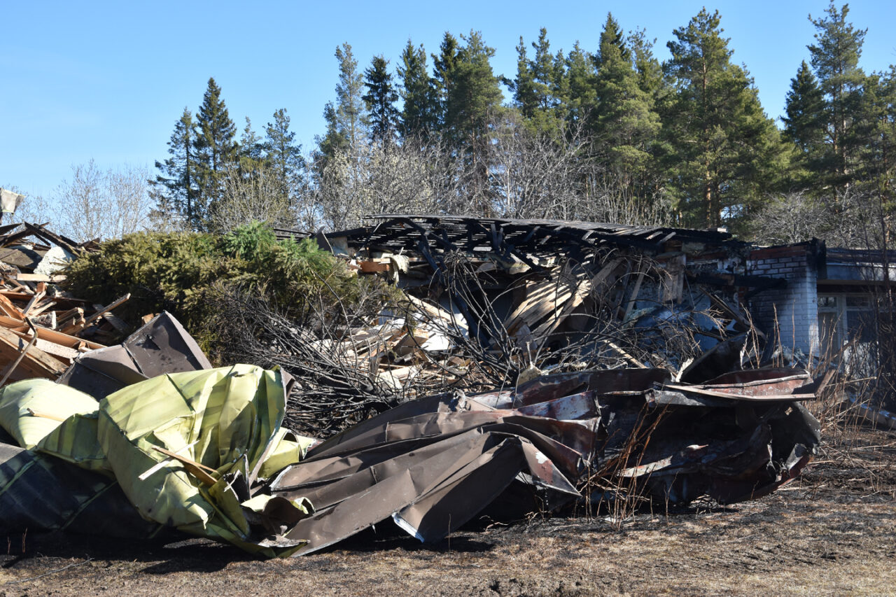Rakennuksen katto- ja seinärakenteita jouduttiin purkamaan palon sammuttamiseksi. Kuva: Aleksi Olli